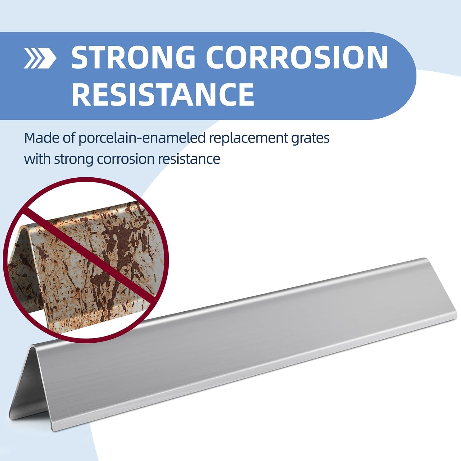 - 【Package includes】Come with 2 pack Stainless Steel Grill grid + 2 Heat Deflectors + 5 Flavorizer Bars+3 Burners, Easy to install and replace.The grill grate is your ideal grill replacement part