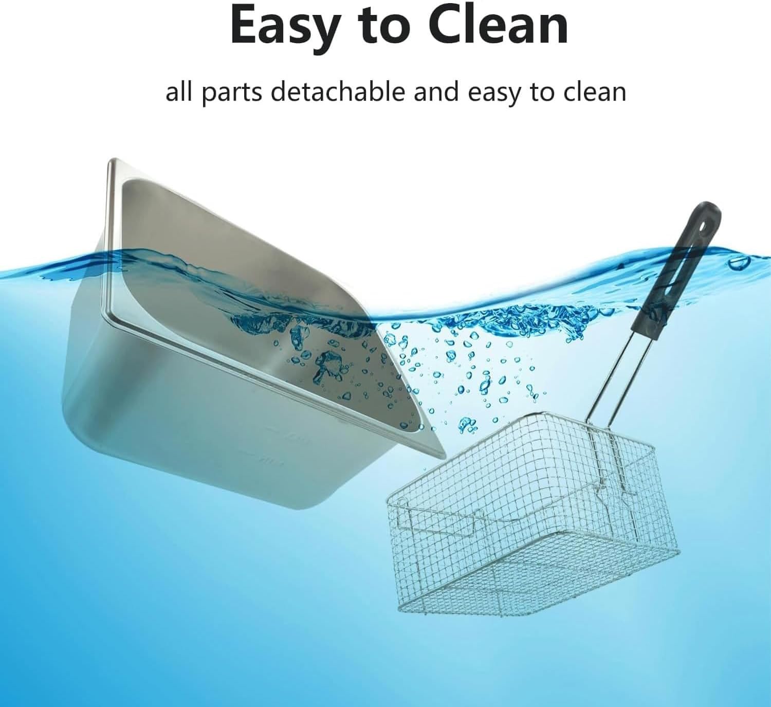 - 【Easy to Clean】Cleaning up after frying has never been easier! This Deep Fryer features a fully detachable design, with every component—including the frying basket, oil container, and the framework—being detachable and dishwasher-safe(heating element except). Say goodbye to stubborn grease and hard-to-reach corners!