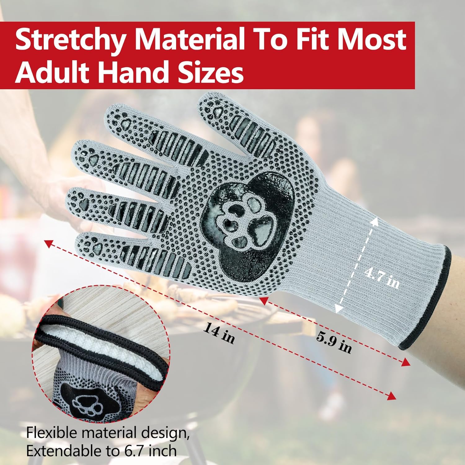- PREMIUM THREE LAYERS MATERIAL: UBeesize bbq gloves are crafted with exceptional materials for maximum performance. The first layer features thicken silicone strips, ensuring a firm grip. The second layer consists of ultra-strength aramid fiber, providing excellent heat resistance and flame retardancy. Finally, the third layer is made from polyester-cotton, offering comfort and allergy prevention