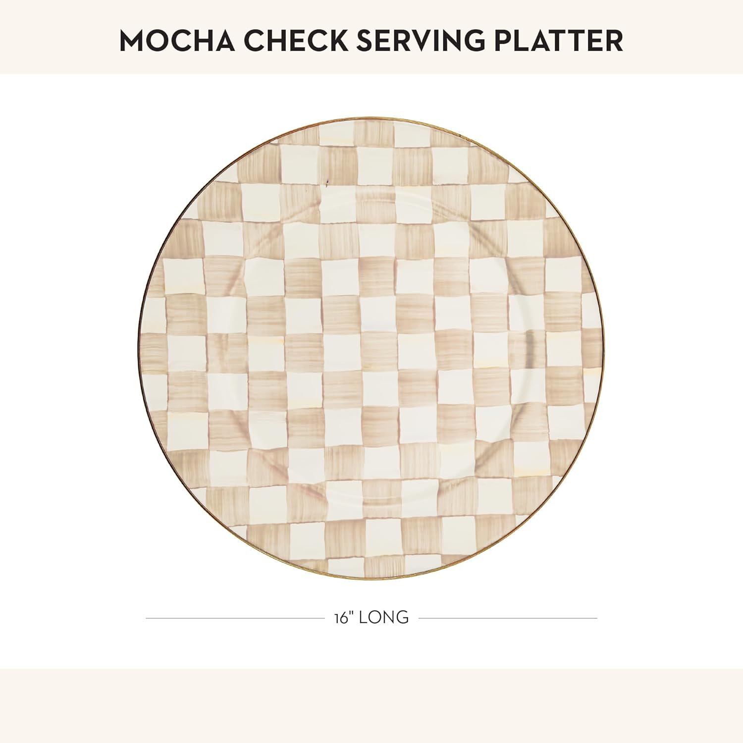 MACKENZIE-CHILDS Enamel Serving Platter, Decorative Serving Platter for Food, 16 Inches, Brown-and-White Mocha Check