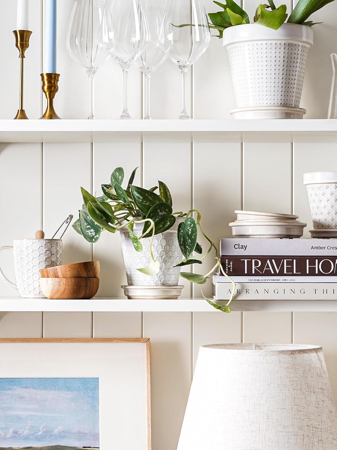 - Simplify Plant Care: Crafted from high-quality ceramic, the glaze on the surface adds aesthetic allure and ensures the pot's moisture retention. There is no need for frequent watering, making plant care a breeze. The thoughtful bottom drainage holes and drip pans can drain excess water while ensuring a clean desktop