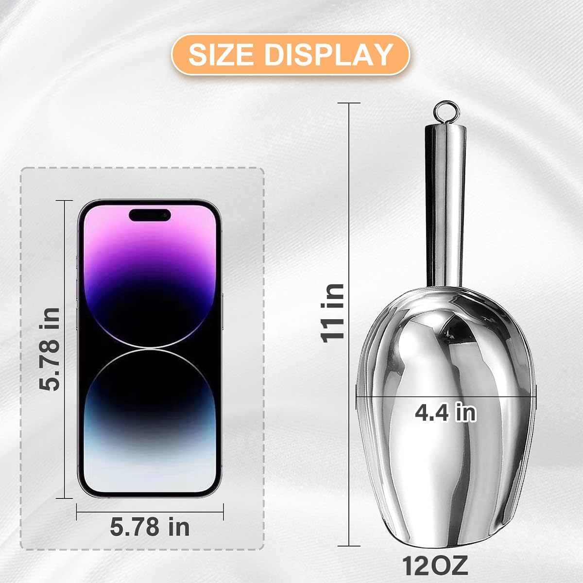 Metal Ice Scoop,Kitchen Ice Scooper for Ice Maker,Stainless Steel Small Ice Scooper for Freezer,Kitchen Gadgets Cookie Flour Pet Dog Food Scoop (silver, 12oz)