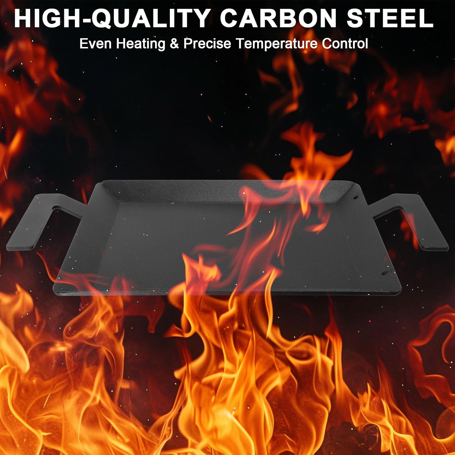 - 【Professional Carbon Steel Construction】Carbon steel griddle crafted from heavy-duty carbon steel, stove top griddle withstands extreme heat up to 1200°F without warping. Reinforced edges and a warp-resistant base ensure rock-solid stability, Rust-resistant oil-rubbed finish withstands for outdoor-to-indoor durability