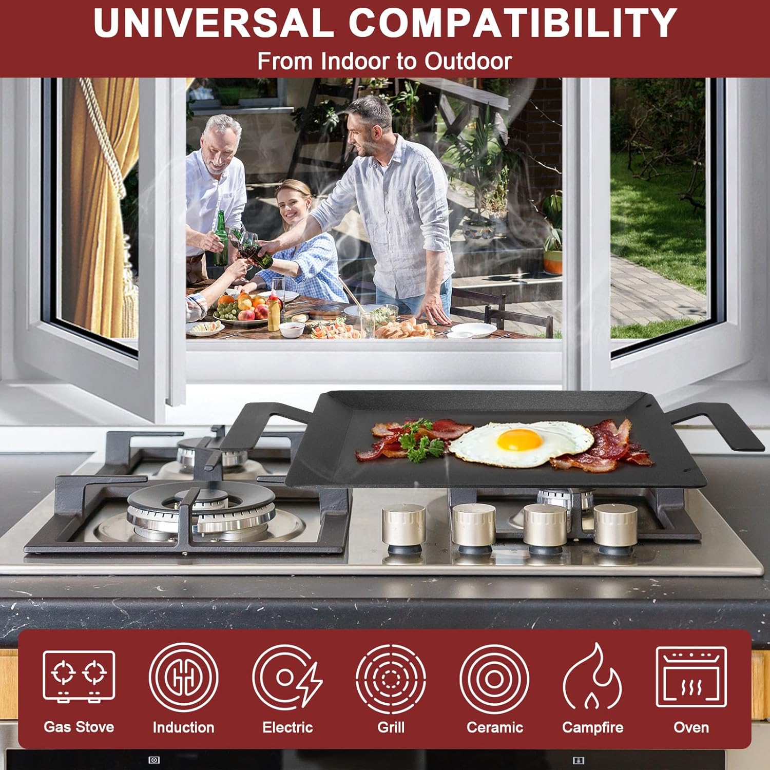 - 【Full-Scenario Cooking Compatibility】17" x 10" cooking area fits a variety of gas grills, gas stoves top, induction, electric, oven, ceramic, induction griddle for campfires & outdoor kitchens, ideal for backyard BBQs, camping trips, or busy family kitchens