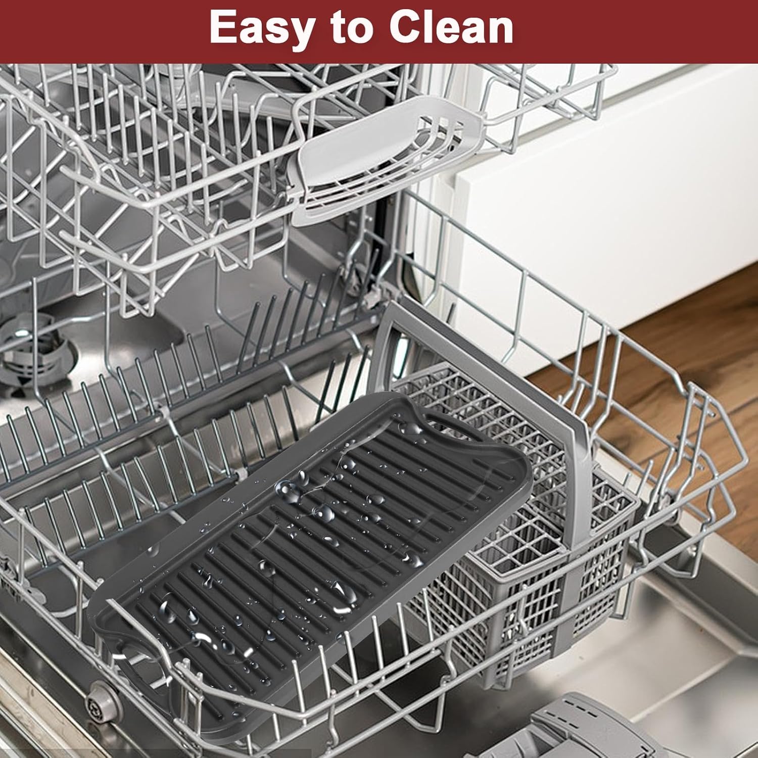 - Large Size for Family Meals & Meal Prep - Measuring 17 inches long and 10 inches wide, this griddle plate can cover two burners at once, making it ideal for cooking multiple steaks, pancakes, or grilled cheeses simultaneously. Save time and space with this kitchen essential