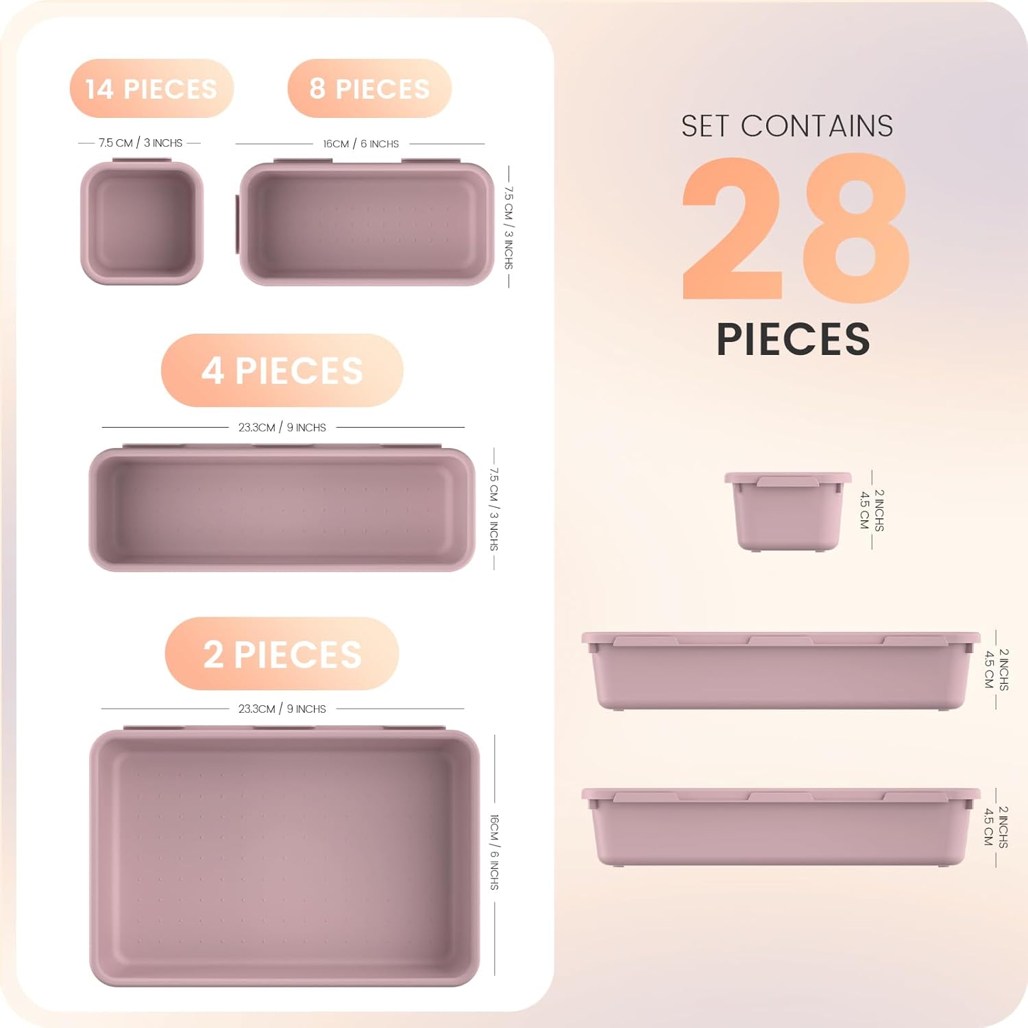 - 【One Set, Endless Uses】 ---- Perfect for any drawer in your home! These 28-piece drawer organizers offering practical solutions for every space. Their flexible design adapts to your needs, keeping drawers tidy, functional, and ready for versatile organization and storage.