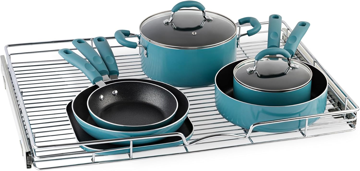 - A MUST HAVE PULL OUT DRAWER: This sliding cabinet organizer installs in under 30 minutes and makes it super easy to store, organize, and access spice rack, pots, and baking sheets.