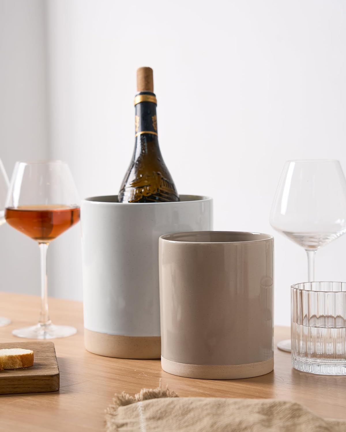 - 【Multi-Functional Cooking Utensil Holder】These kitchen utensil holders do more than just store cooking utensils. They also double as elegant vases, offering a stylish home for hair tools like combs, can be used as a storage container for freshly baked bread, even can be used as an ice bucket to cool champagne and wine. Their versatility knows no bounds!