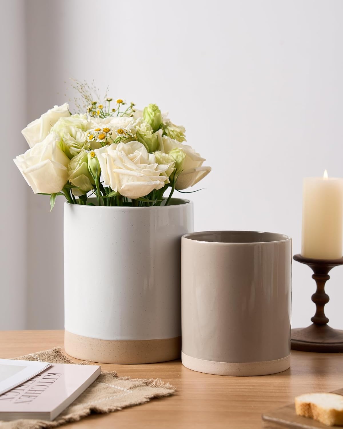 famiware Milkyway Kitchen Utensil Holder for Countertop, Ceramic Cooking Utensil Crocks for Kitchen Counter, Utensil Organizer for Spatula & Spoon, Set of 2, White and Cinnamon Brown