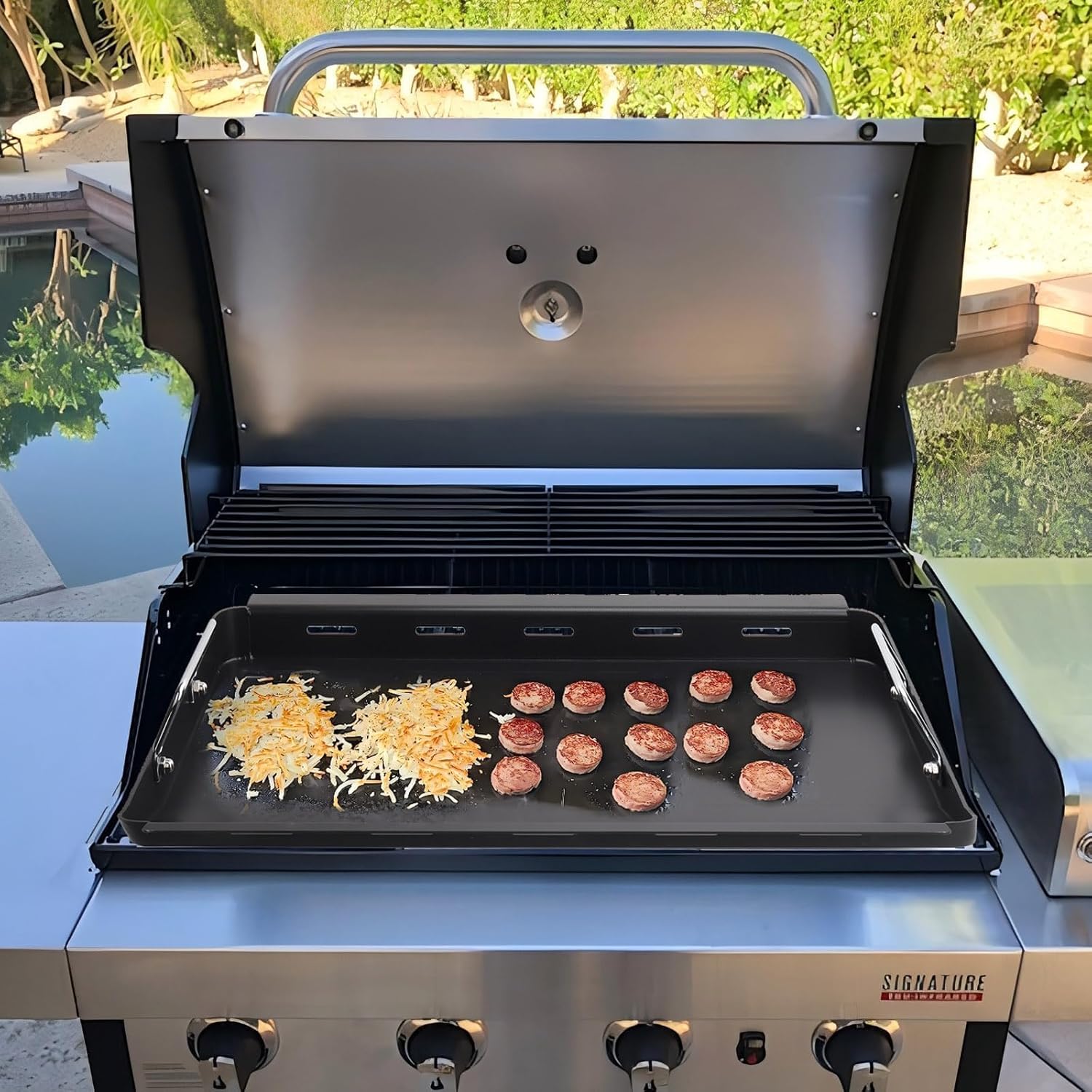 - ✅Crafted with high-quality materials, this griddle insert for charbroil tru infrared 4-burner ensures even heat distribution and exceptional durability. The advanced non-stick coating allows for effortless food release and easy cleaning, making it a hassle-free addition to your grill. The extra handles are designed for a firm grip and make switching between grill griddle and grill grate easier