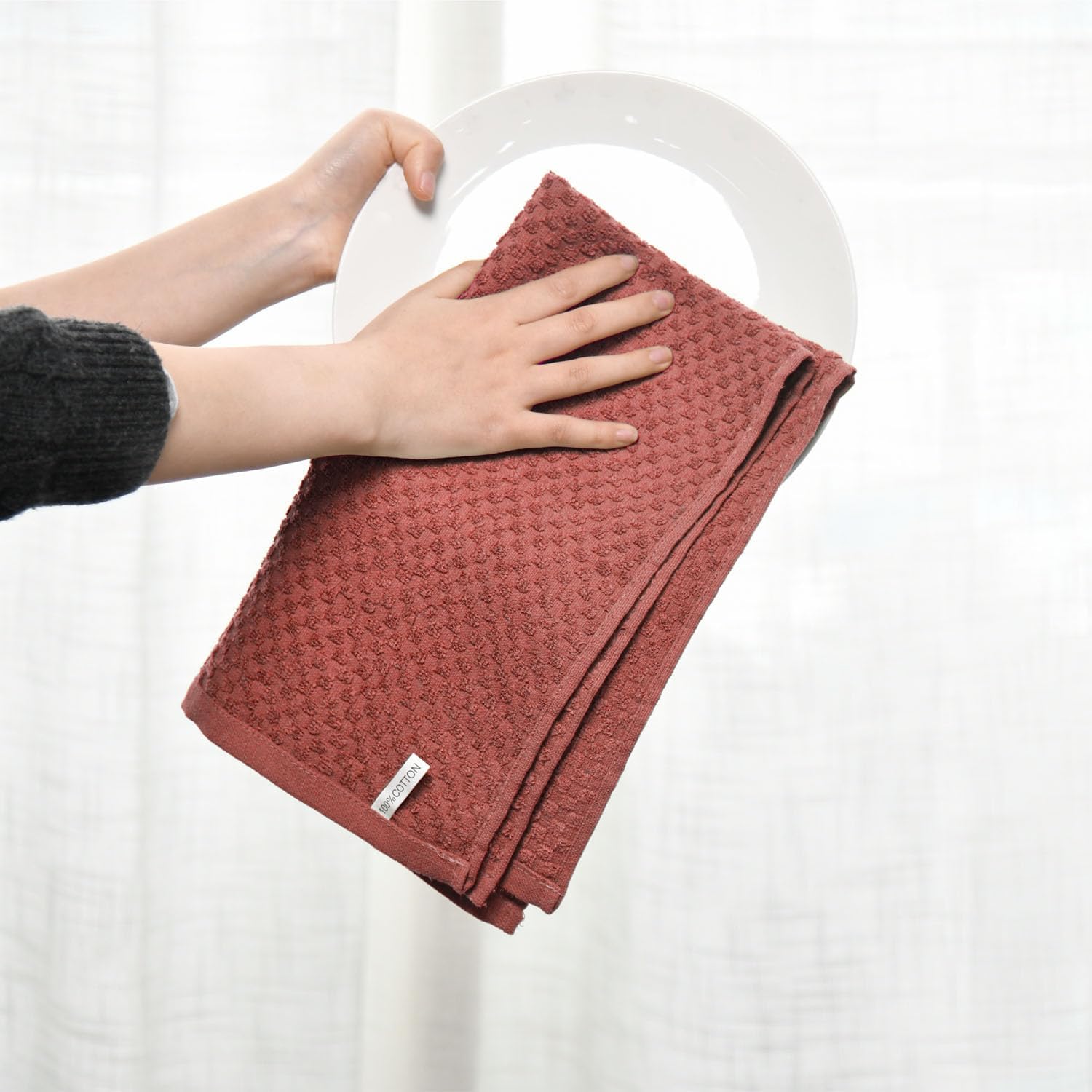 - COTTON DISH CLOTHS: 100% cotton kitchen towels that feel soft and comfortable. Unique design make it have durability. And it softens with each wash, so these dish towels won't scratch your delicate cookware, plates and pans.