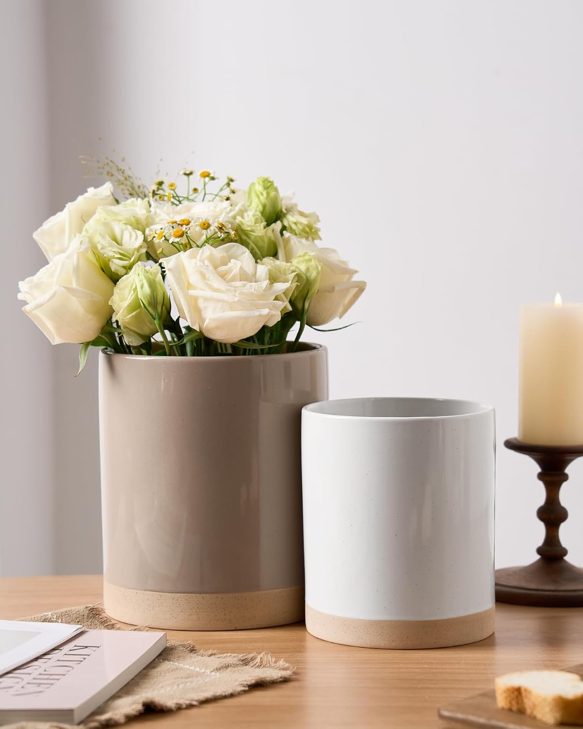 - 【Multi-Functional Cooking Utensil Holder】These kitchen utensil holders do more than just store cooking utensils. They also double as elegant vases, offering a stylish home for hair tools like combs, can be used as a storage container for freshly baked bread, even can be used as an ice bucket to cool champagne and wine. Their versatility knows no bounds!