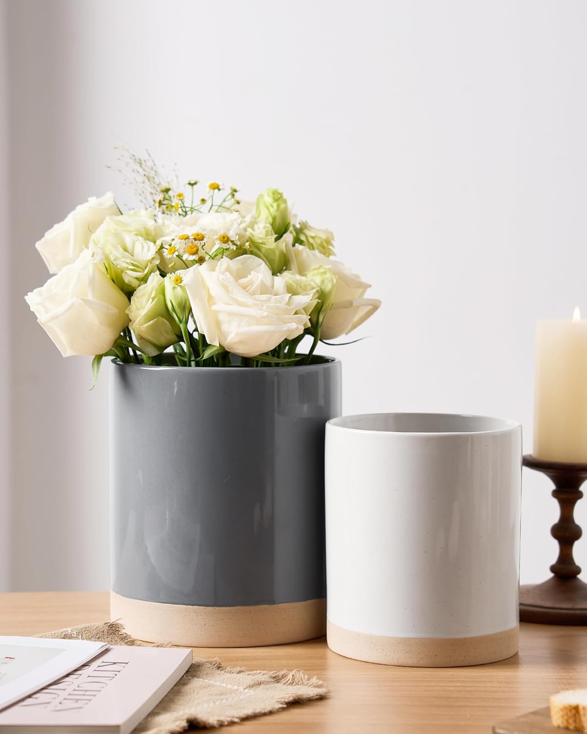 famiware Milkyway Kitchen Utensil Holder for Countertop, Ceramic Cooking Utensil Crocks for Kitchen Counter, Utensil Organizer for Spatula & Spoon, Set of 2, Dark Gray and White