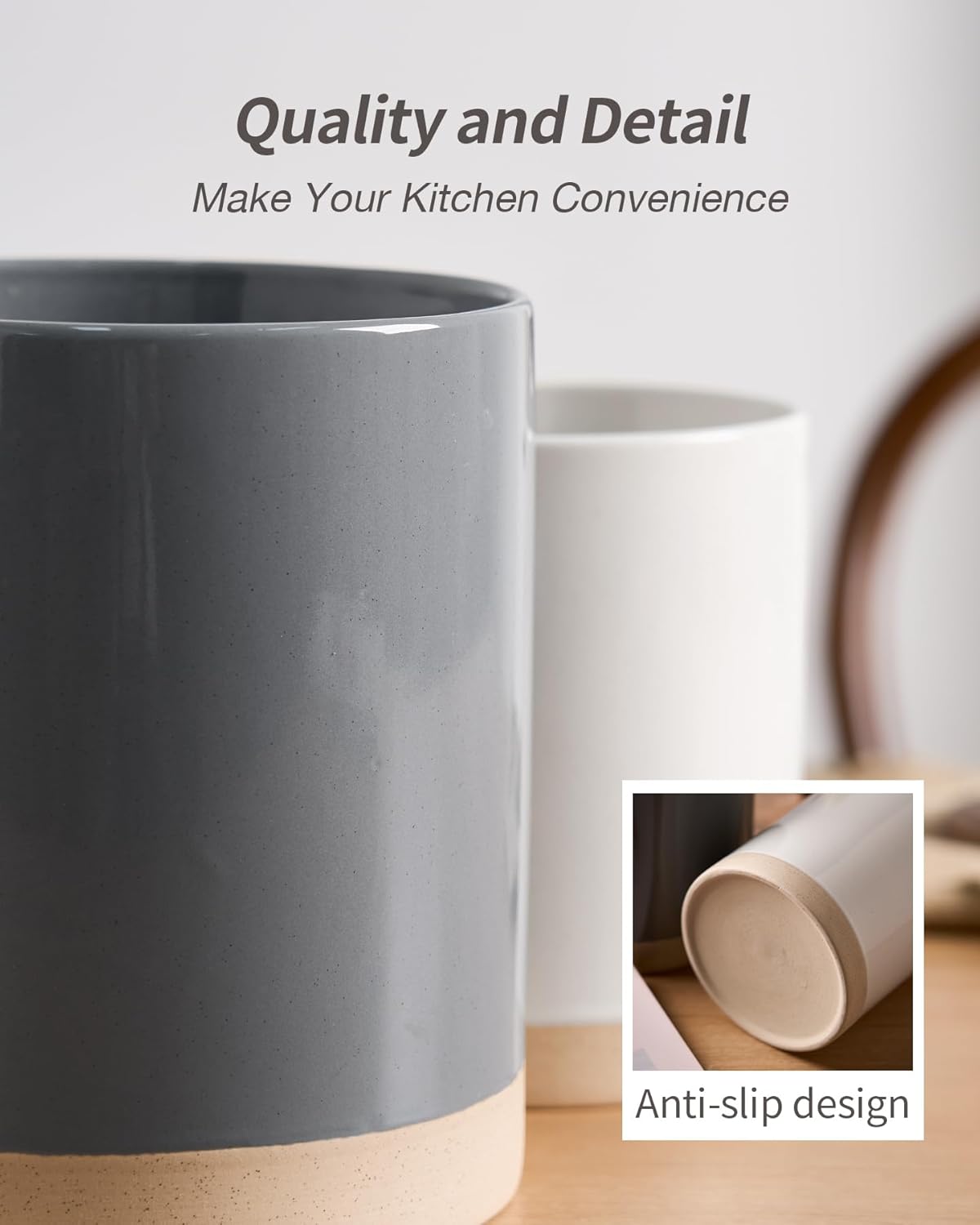 - 【Ideal Choice】The ceramic utensil holder for kitchen counter is suitable for everyone who loves life and loves cooking. If you or your side have such a hardworking friend or loved one, our product would be a great choice. It is also a thoughtful choice for birthdays, holidays, anniversaries or any other occasion. Its simple yet elegant design makes it easy to incorporate into any modern / farmhouse style or decor, clean look that is sure to impress.