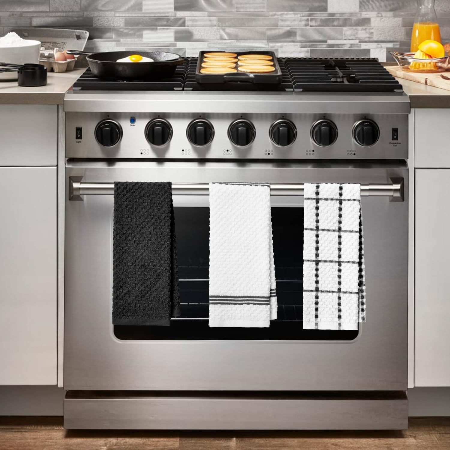 Artoid Mode Ring Spun Cotton Black Kitchen Dish Towels, 15x25 Inch Ultra Soft Absorbent Quick Drying Household Cleaning Tea Towels Bar Towels Set of 6