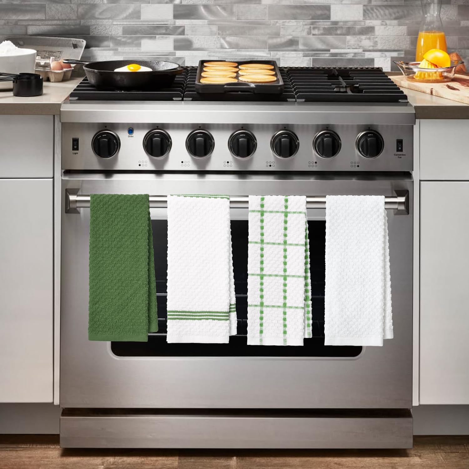 Artoid Mode Ring Spun Cotton Green Kitchen Dish Towels, 15x25 Inch Ultra Soft Absorbent Quick Drying Household Cleaning Tea Towels Bar Towels Set of 4
