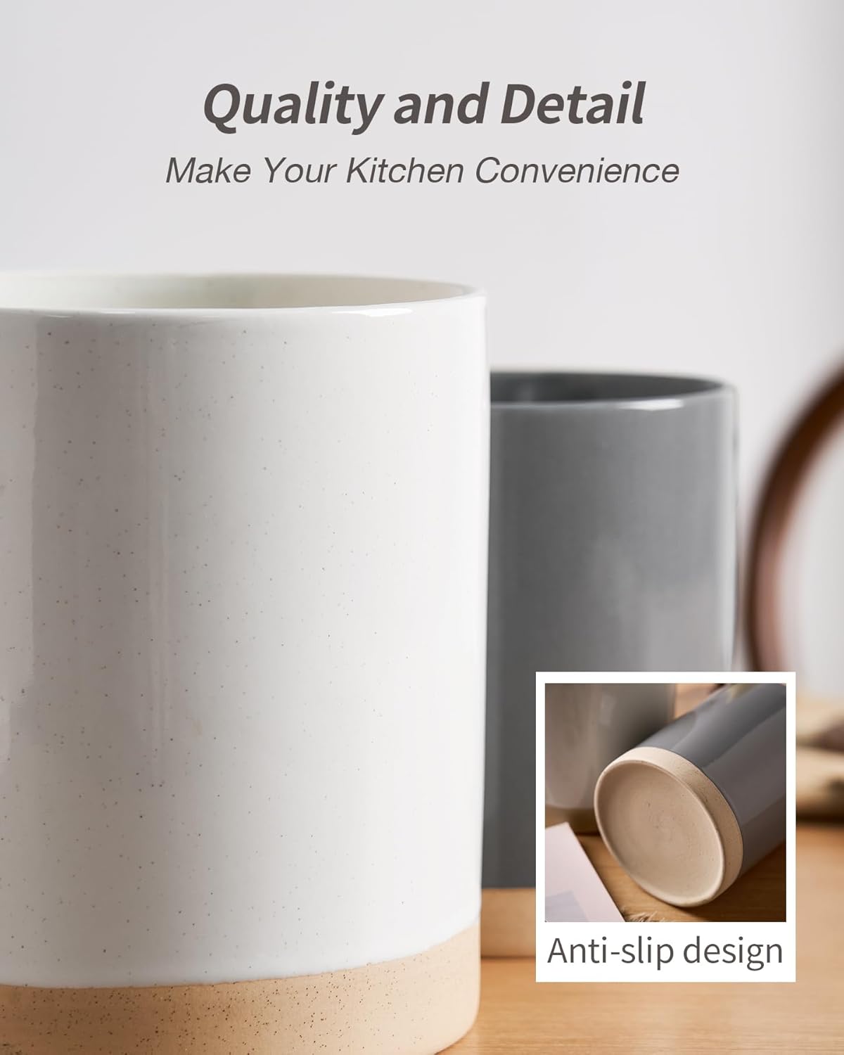 - 【Chic Modern Home Decor】Our kitchen utensils holder features a simple, modern design with sesame dots on the surface. This stylish design perfectly complements any kitchen decor, improving both your cooking efficiency and the overall ambience of your home.