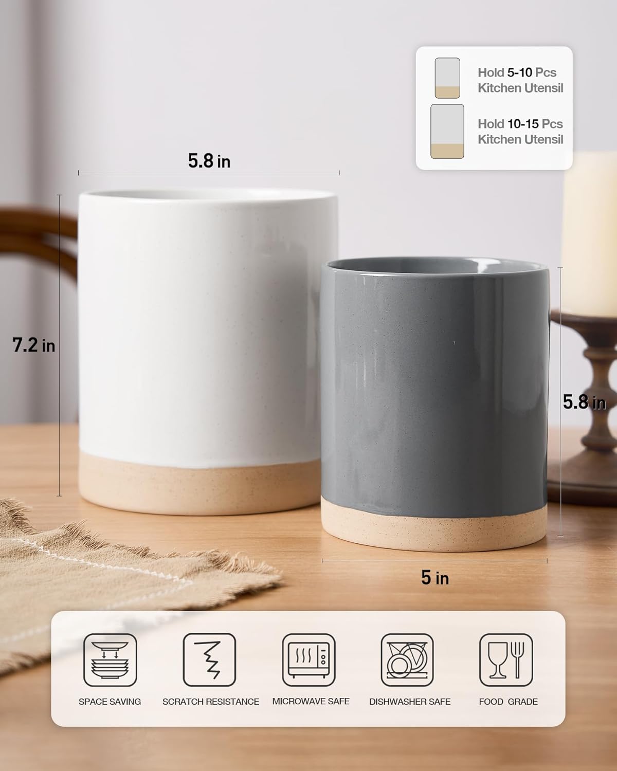 - 【Ideal Choice】The ceramic utensil holder for kitchen counter is suitable for everyone who loves life and loves cooking. If you or your side have such a hardworking friend or loved one, our product would be a great choice. It is also a thoughtful choice for birthdays, holidays, anniversaries or any other occasion. Its simple yet elegant design makes it easy to incorporate into any modern / farmhouse style or decor, clean look that is sure to impress.