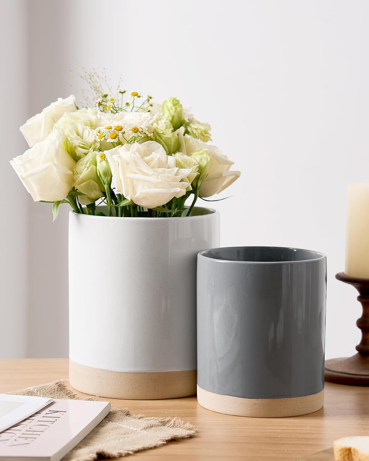 - 【Multi-Functional Cooking Utensil Holder】These kitchen utensil holders do more than just store cooking utensils. They also double as elegant vases, offering a stylish home for hair tools like combs, can be used as a storage container for freshly baked bread, even can be used as an ice bucket to cool champagne and wine. Their versatility knows no bounds!