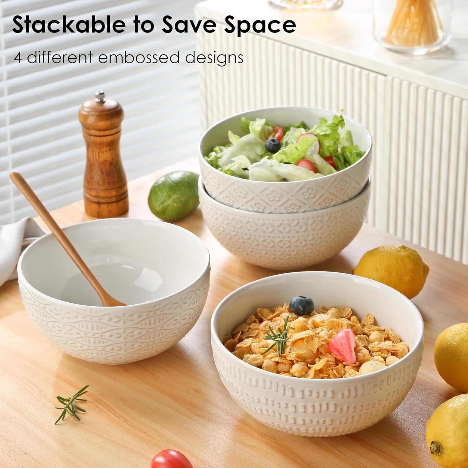 - Hand-Embossed Gift Display: Each ceramic bowl is decorated with a unique 3D embossed farmhouse style pattern, which enhances the daily dining experience and perfectly matches your kitchen decoration. Hand-carved artistic patterns and high-quality workmanship make it perfect for gift giving. Whether it's a birthday, Mother's Day, Christmas or a housewarming