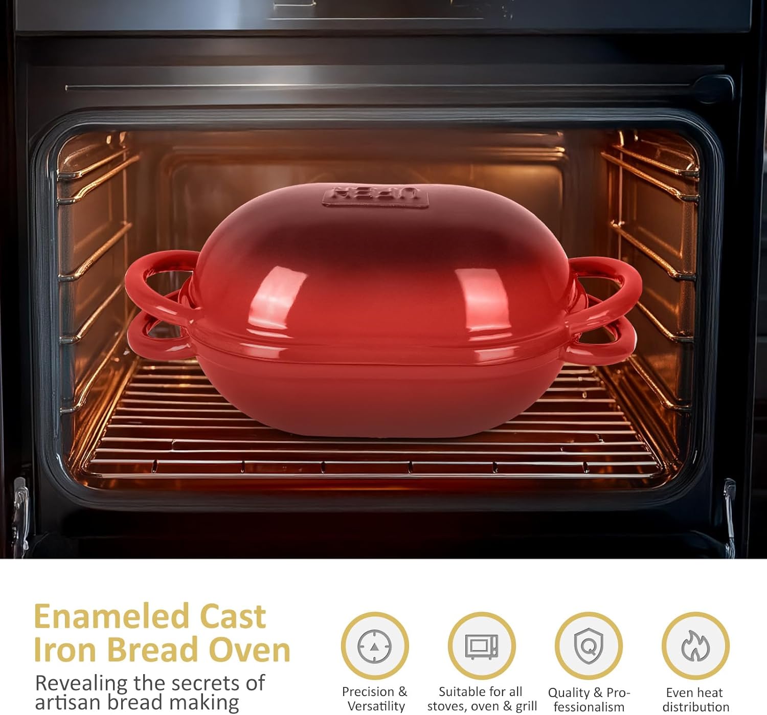 - Ideal 2 QT Compact Size – The red enamel Cast Iron Bread Oven Perfect for baking individual or small loaves (1-1.5 lbs), great for singles, couples, or small batches. The round shape promotes optimal steam circulation for bakery-quality resultsp.