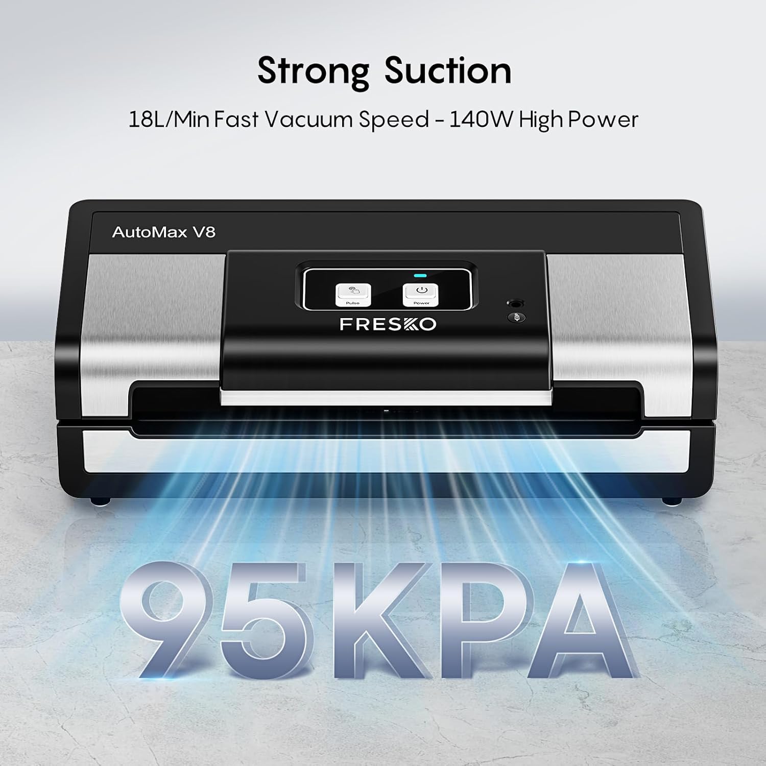 - 【Superior Performance/Inteligent Wet-Preservation】With powerful suction and exclusive sealing technology, our vacuum sealer effectively seals up to 50 bags continuously within 20 minutes. In automatic mode, the intelligent moisture lock technology allows the machine to seal immediately after detecting liquid, thereby better locking in the moisture of the ingredients