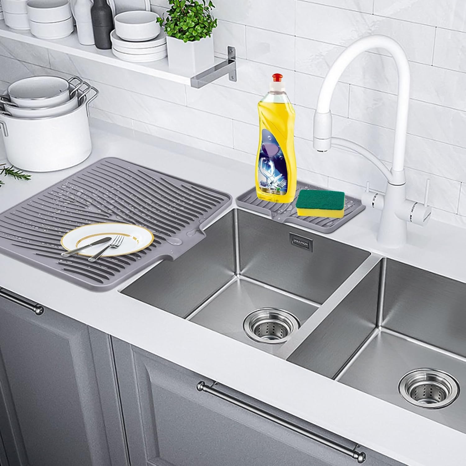 Silicone Dish Drying Mat for Kitchen Counter, Dish Drying Pad, Non-Slip Drain Pad with Built-in Drain, Heat Resistant Stone Drying Mat, 1 set XL(Grey)