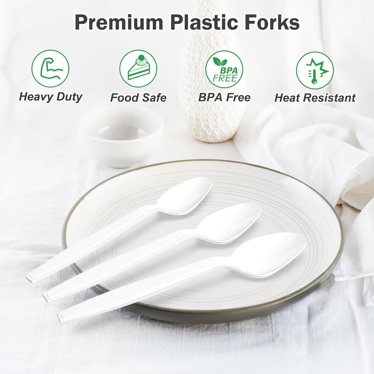 360 Count White Plastic Spoons Disposable, BPA-Free, Heat Resistant, Solid and Durable Disposable Spoons Heavy Duty Bulk, Premium Spoons plastic disposable for Party Supply