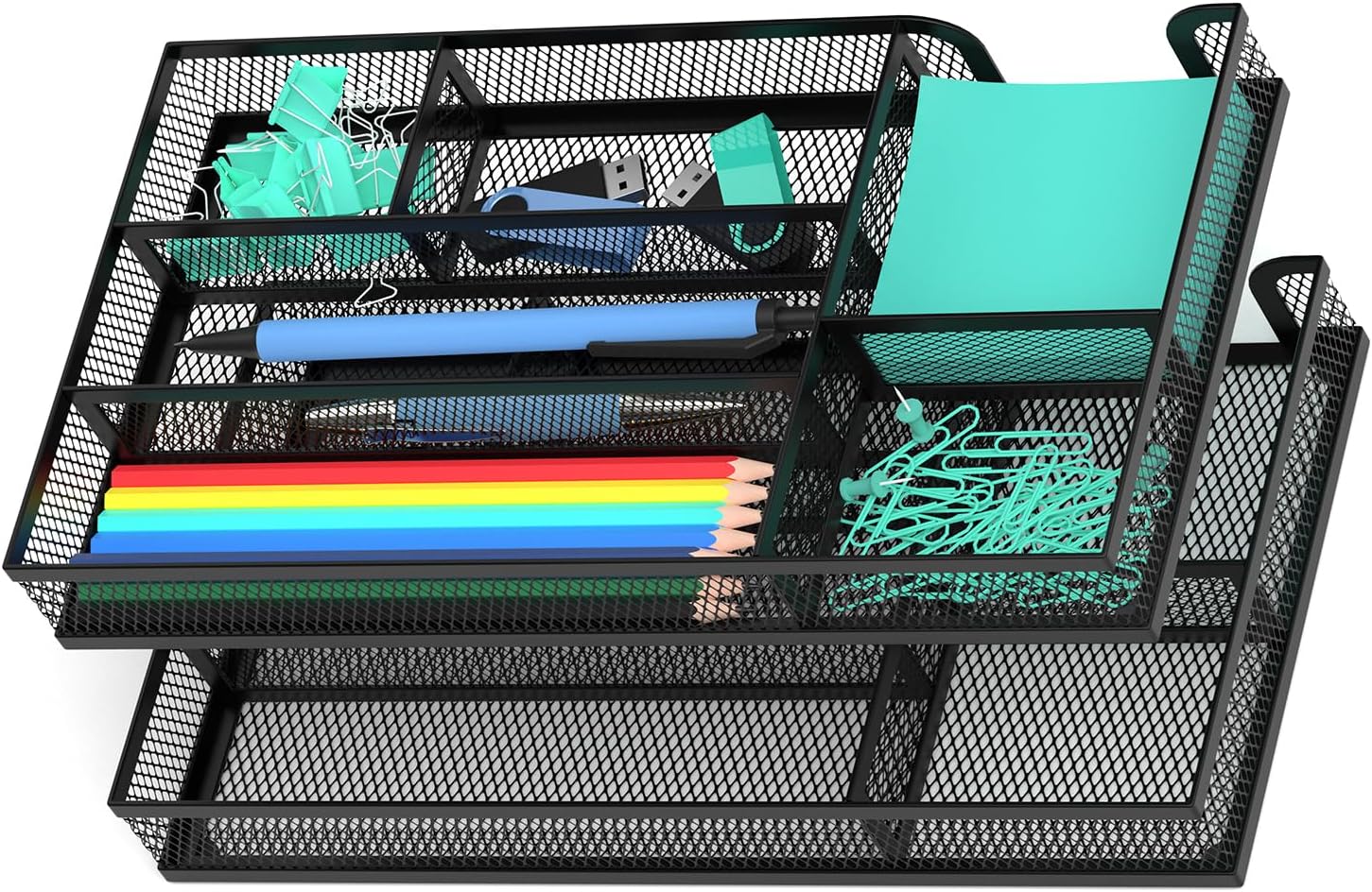 Desk Drawer Organizer, Metal Mesh Dividers Organizer (Blak-2P, Small)