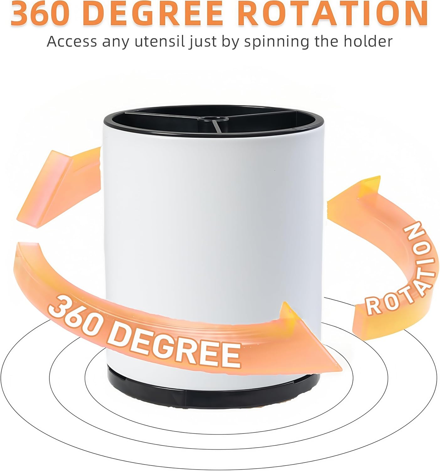 - Smooth 360° Rotation: Experience unparalleled convenience with our smooth-gliding, 360-degree rotation feature. Simply spin the holder to access any utensil you need, eliminating the frustration of searching through a tangled mess. This innovative design ensures that your utensils are always within easy reach, making your kitchen tasks more efficient and enjoyable.