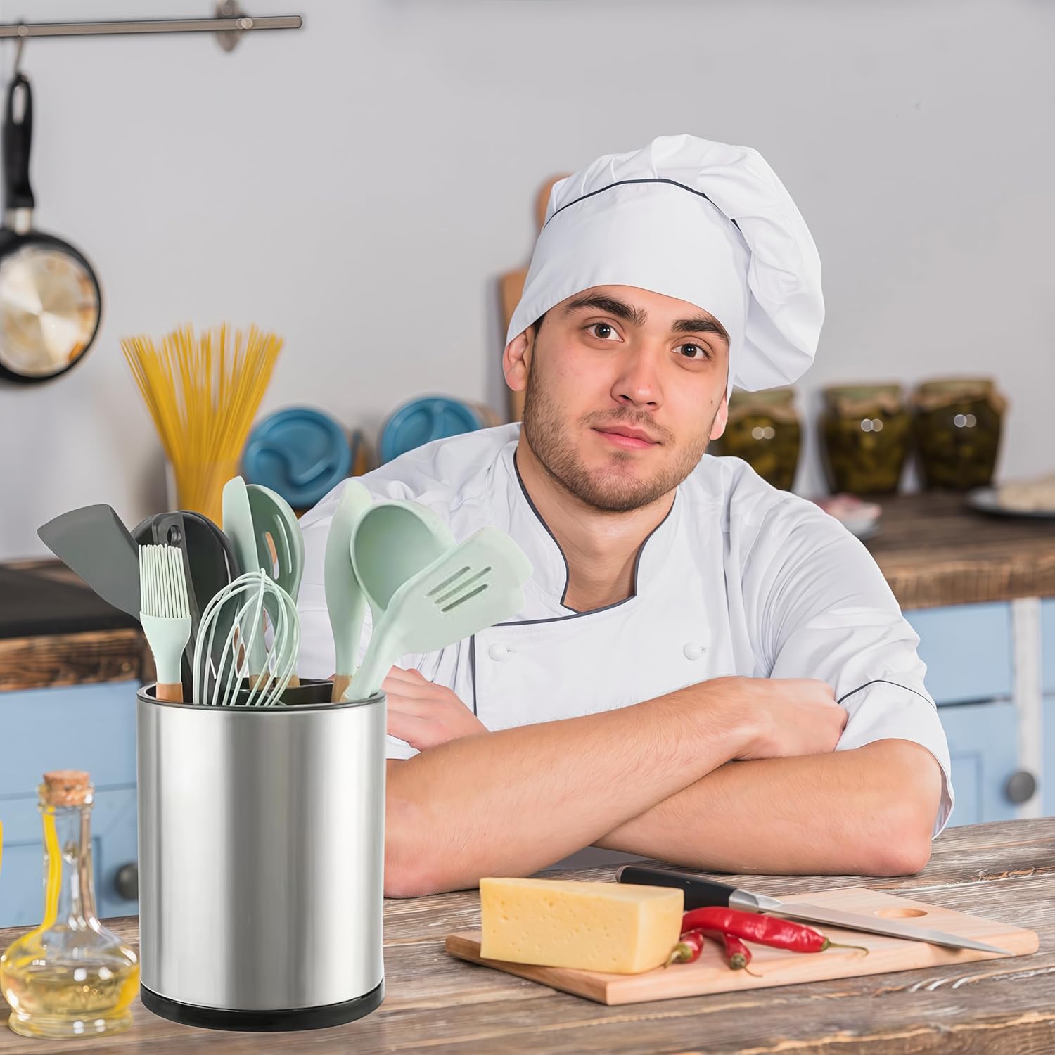 - A Smart Solution for Every Kitchen: Whether you're a seasoned chef or a home cook, our Utensil Holder is the perfect addition to your kitchen. Its combination of ultra-capacity, smooth rotation, fingerprint resistance, and easy disassembly for cleaning makes it a smart, practical choice for anyone seeking a more efficient and organized cooking space.