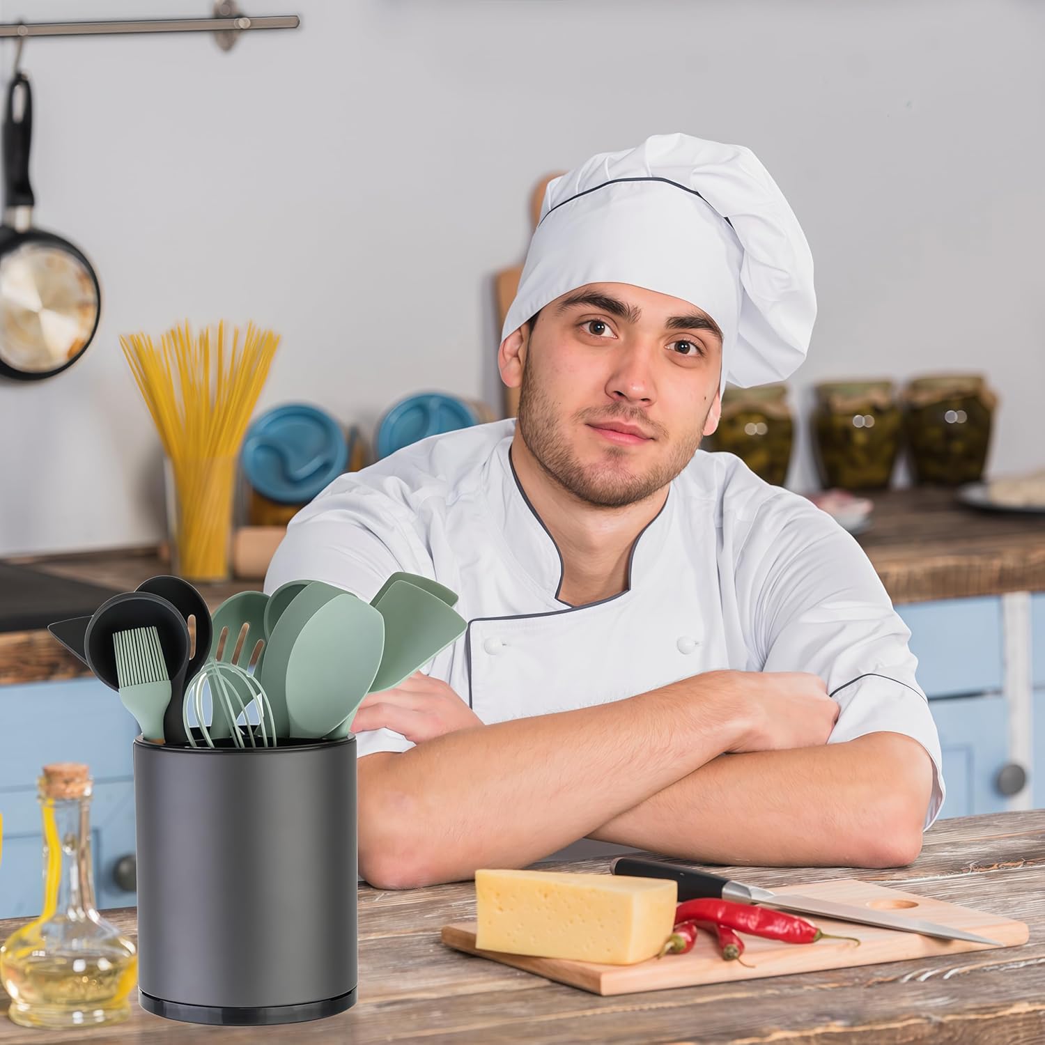 - Smooth 360° Rotation: Experience unparalleled convenience with our smooth-gliding, 360-degree rotation feature. Simply spin the holder to access any utensil you need, eliminating the frustration of searching through a tangled mess. This innovative design ensures that your utensils are always within easy reach, making your kitchen tasks more efficient and enjoyable.
