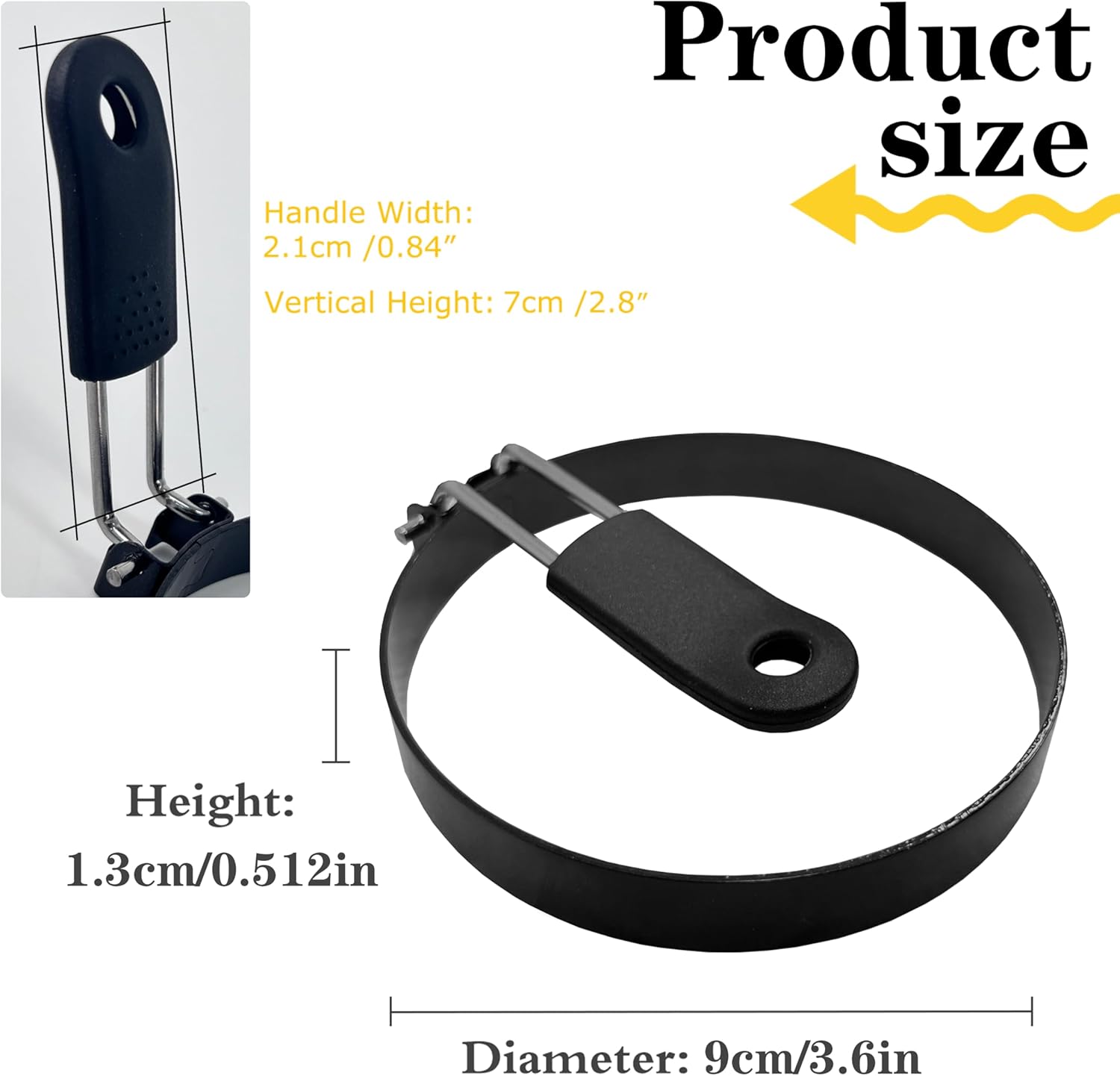 4 packs 3.5'' Egg Rings Set with Silicone Handle, Stainless Steel Egg Cooking Rings,Nonstick,For Frying Eggs and Egg Mcmuffins, Egg Mold For Breakfast