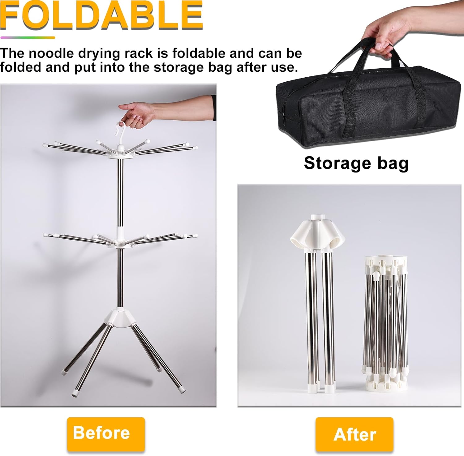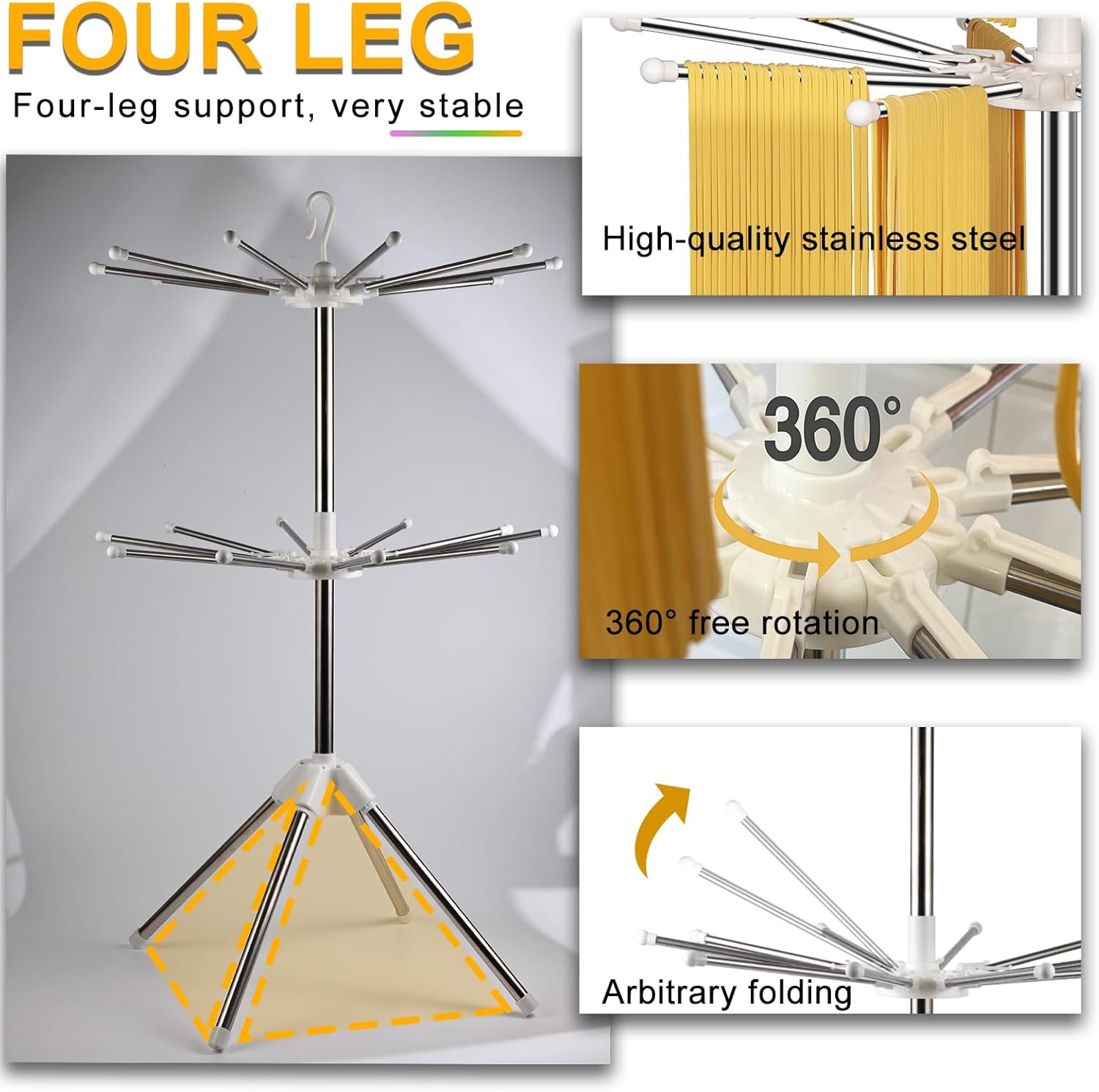 - Each layer of pasta drying rack collapsible can rotate 360° freely, easy to operate.