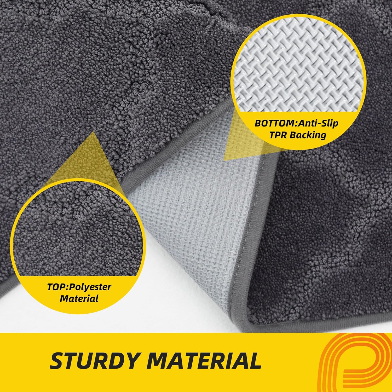 JSEI Kitchen Rugs, Non-Slip Kitchen Mats for Floor, Soft Washable Absorbent Kitchen Mats 2 Pieces, Kitchen Carpet Runner with TPR Backing, Polyester, 20”x32”+20”x48”, Dark Grey