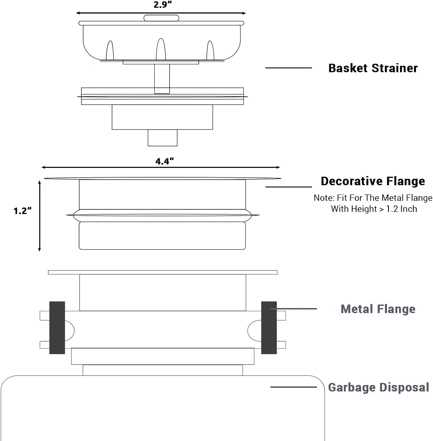 - 【Universal Design Compatibility】Designed to fit most US standard 3.5-inch garbage disposal metal collars, this garbage disposal flange strainer and stopper seamlessly integrates with your existing garbage disposal.