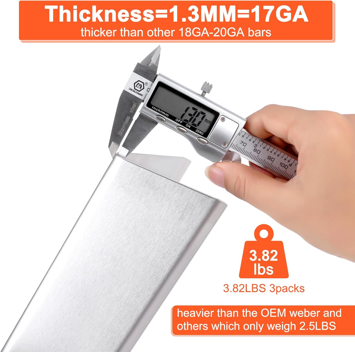 - 🔥【DIMENSIONS & PACKAGE】Each Stainless Steel flavorizer bar: 15.3" x3.5" x2.5"; Each Stainless Steel grate measures: 17.5" x 10.2".【Package 】3 Stainless Steel flavorizer bars+2 Stainless Steel grill grates. Kindly compare with the SIZE and MODEL of your original parts before ordering.