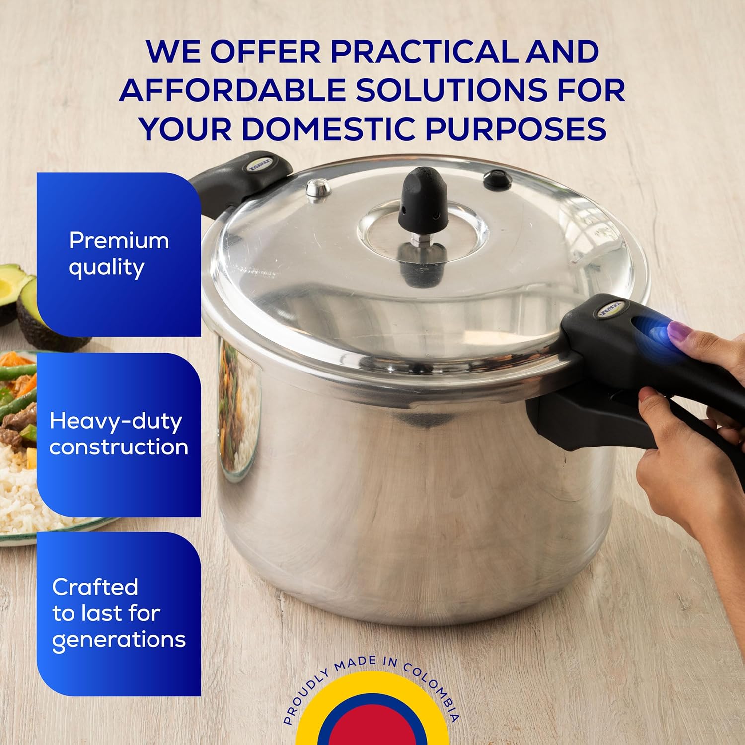- ✅ Premium Colombian Craftsmanship – 25-Year Warranty: Engineered for lifelong durability, this heavy-duty Universal pressure cooker is proudly made in Colombia. Built with superior materials and craftsmanship, it comes with an industry-leading 25-year warranty, ensuring reliability for decades to come.