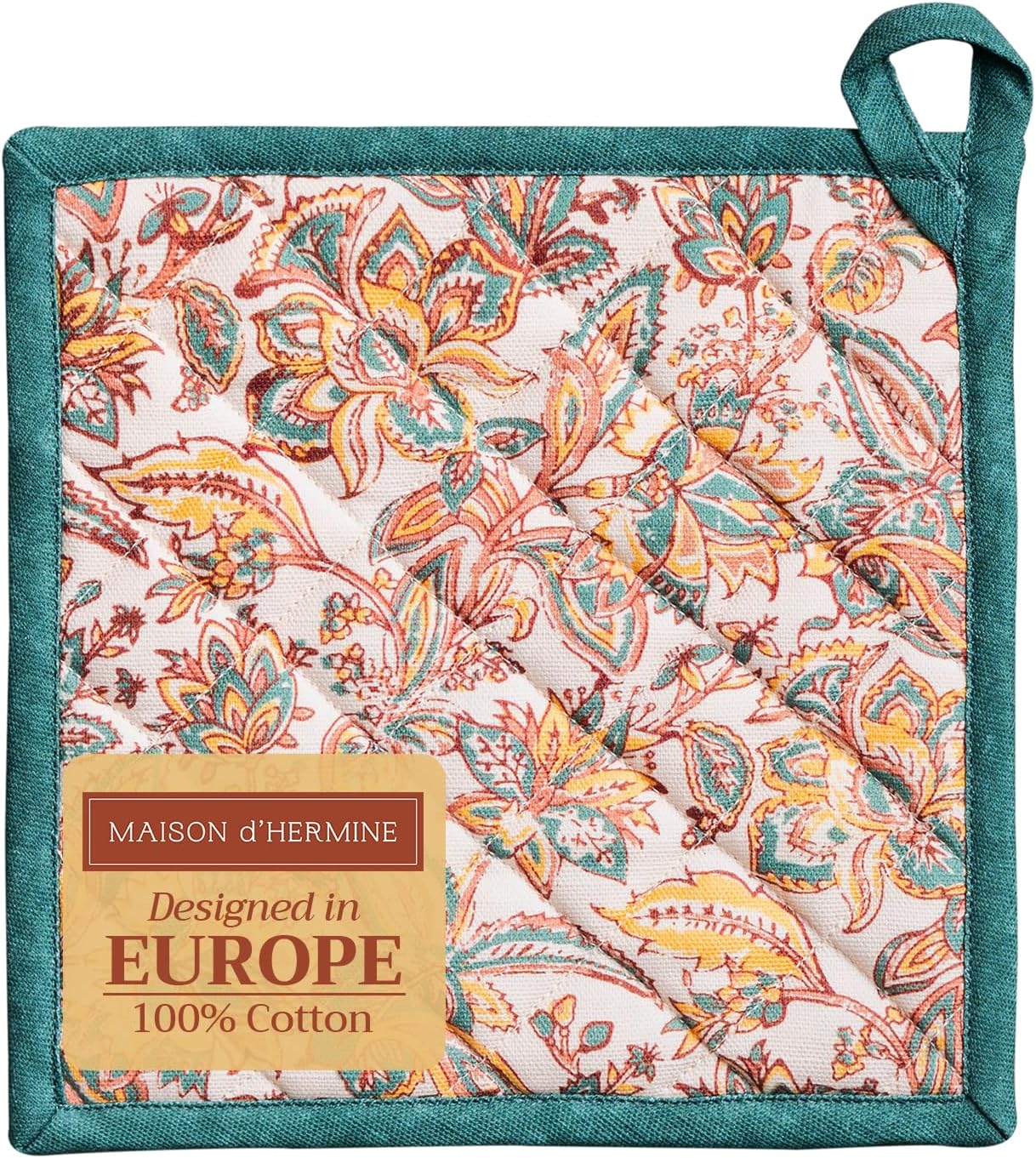 Maison d' Hermine Pot Holders 100% Cotton Heat Resistant Potholders 8" x 8" Hot Pads with Loop BBQ, Cooking, Baking, Grilling, Kitchen, Handling Hot Pans (Pack of 1, Nila)