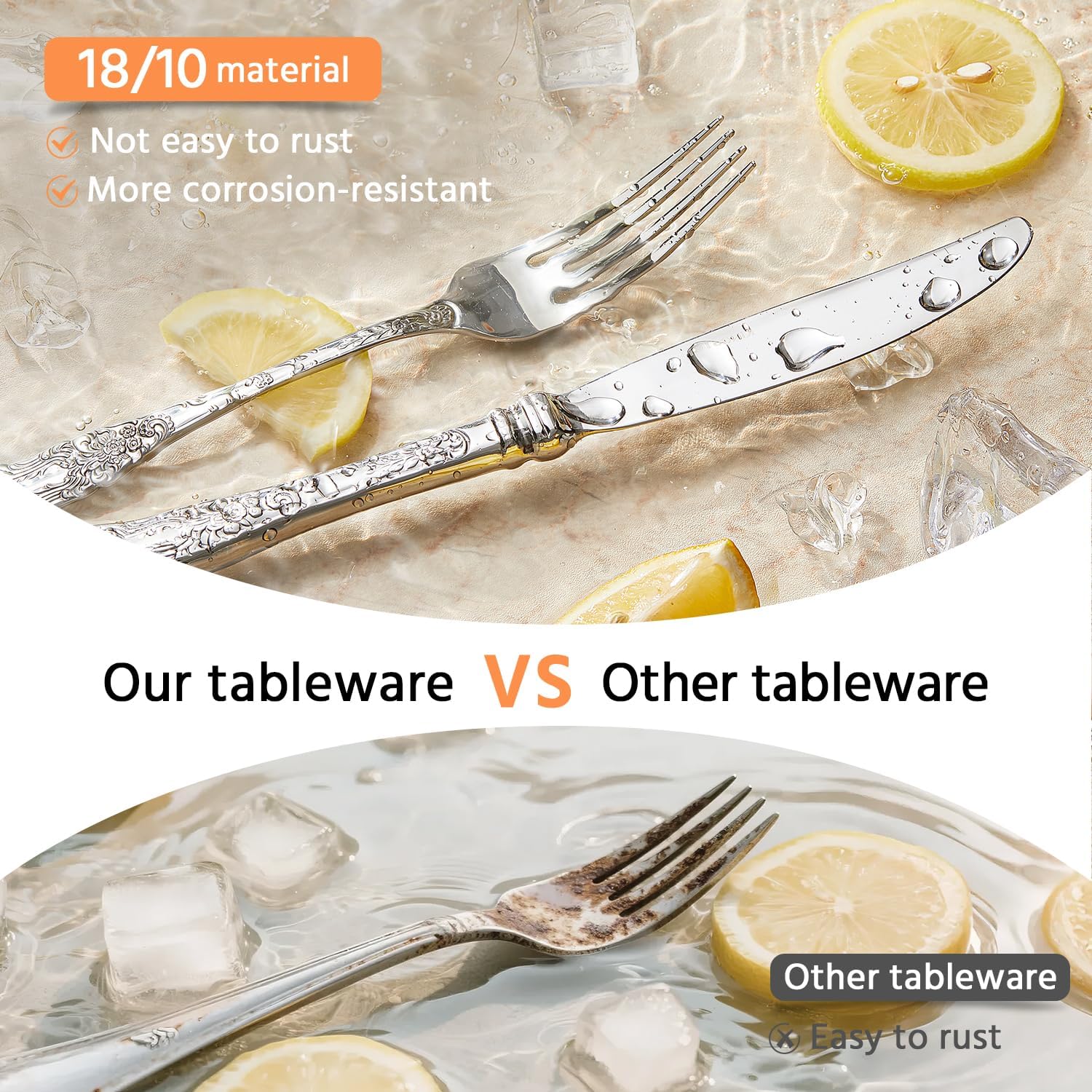 KINGSTONE Vintage Carved Silverware Set, 20-Piece 18/10 Stainless Steel Flatware Cutlery Set with Retro Royal Thick Handle, Tableware Utensils for Home, Restaurant, party, Wedding, Dishwasher Safe