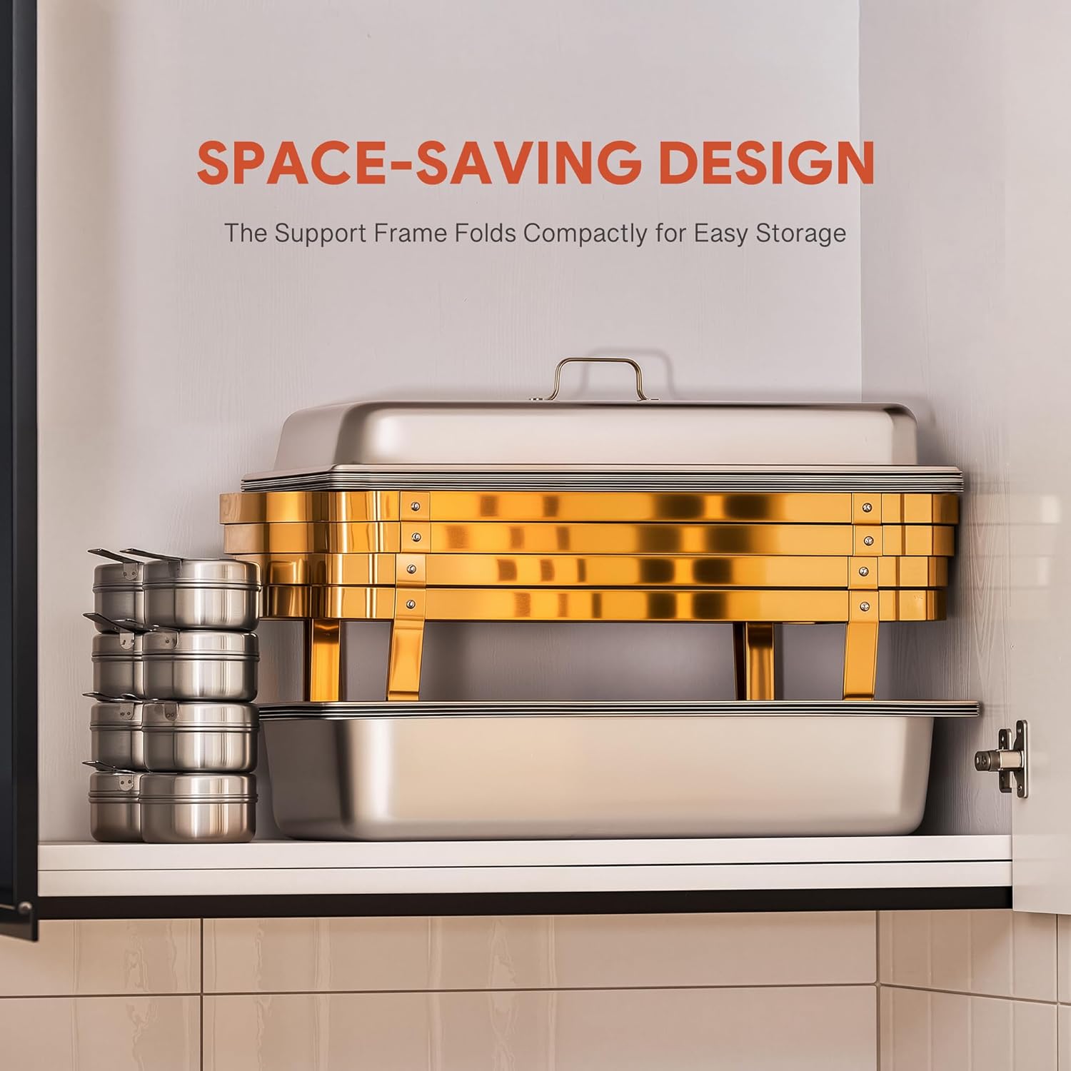 WILPREP Chafing Dishes for Buffet, 4 Pack 9 qt Chafer and Buffet Warmer Set with Full Size Pans & Foldable Frames, Food Grade Stainless Steel Food Warmers for Parties Buffets Banquets, Gold & Silver
