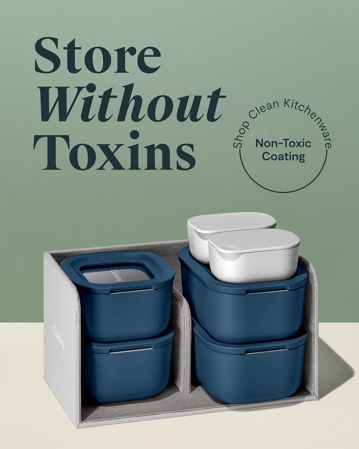 Caraway Mini Food Storage 11pc Set - Glass Storage Containers for Food - Non-Toxic Ceramic-Coated Glass - Air Release Technology - Compact & Stackable Design - Navy