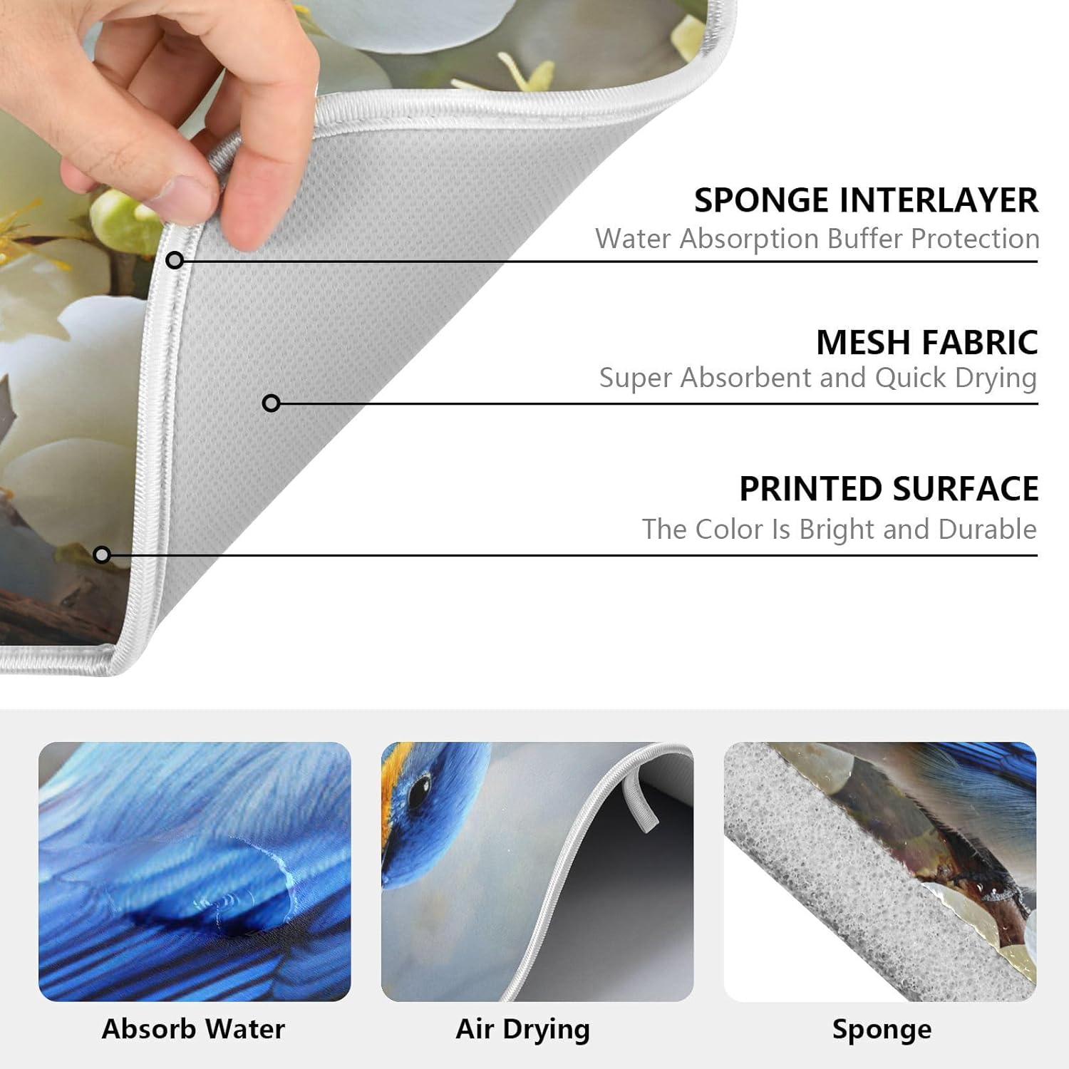 Spring Blue Yellow Flower Bluebird Butterflies Dish Drying Mat for Kitchen Counter Absorbent Microfiber Large Drying Pad Dish mats for Kitchen Countertops 18 x 24 Inch