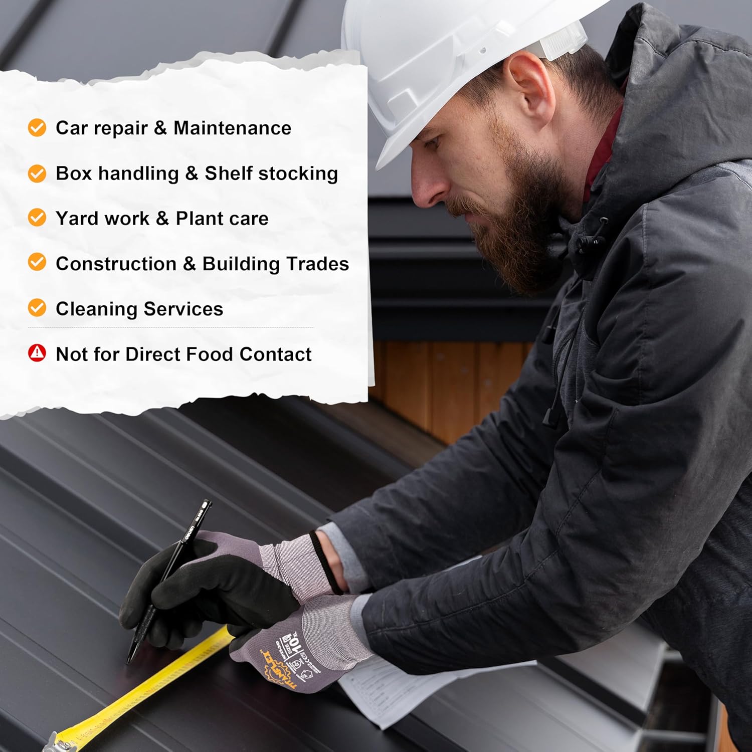 • ALL-SCENE DOMINATION: From warehouse to smart devices, touchscreen-ready nitrile grip, garden gloves for women conquers oil, grease, and dust while operating devices. Lightweight + quick-dry for logistics, cleaning, and assembly. Certified unisex sizing (S-XXL), great summer work gloves for men, gardening gloves for women.