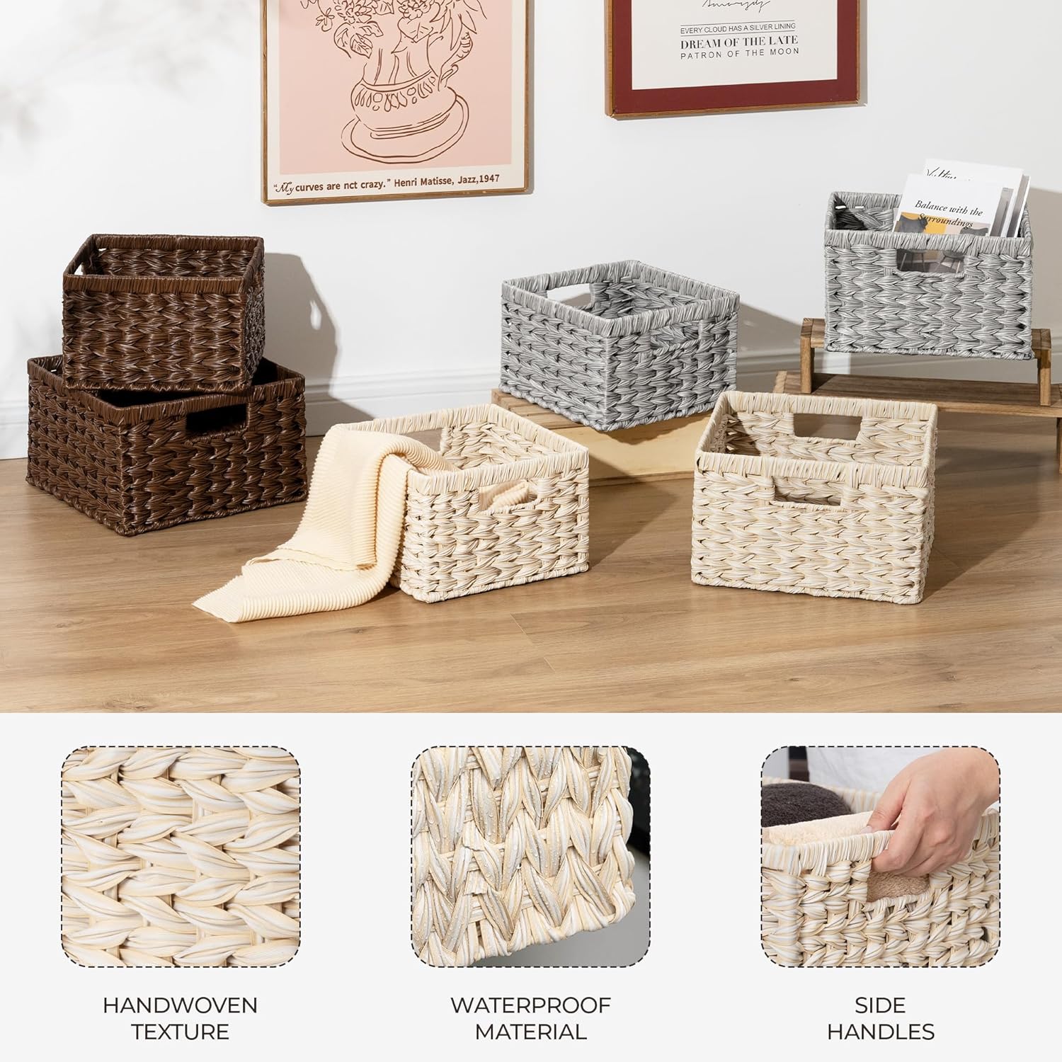 GRANNY SAYS Wicker Baskets for Organizing, Storage Basket for Shelves, Square Shelf Baskets with Handles, Waterproof Woven Basket for Living Room, Baskets for Entryway, Butter Milk