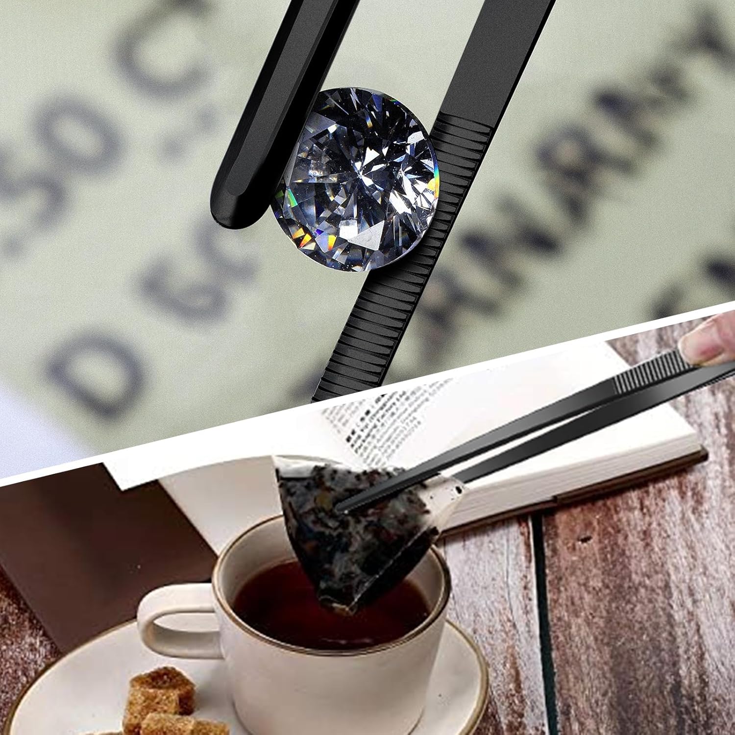 - Multipurpose tweezers: the black steel tweezer measures about 8 inch/ 20 cm, this stainless steel cookware is great along with other kitchen supplies, also good for culinary, beauty, electrical repairing, purpose and crafting