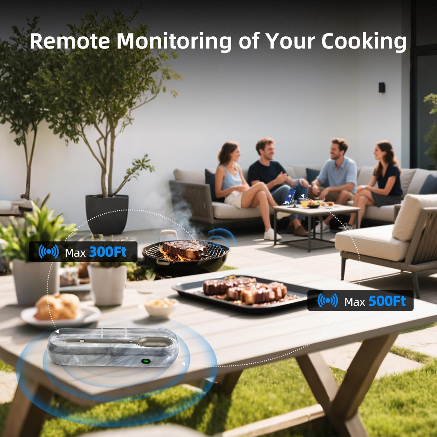 - 【Unique Design & Perfect Gift Choice】 Each wireless cooking thermometer features a uniquely textured design, making every product one-of-a-kind. It's the ideal grilling gift for BBQ enthusiasts, perfect for holidays like Thanksgiving, Christmas, Father's Day, or Mother's Day. Surprise your loved ones with a tool that combines practicality and style