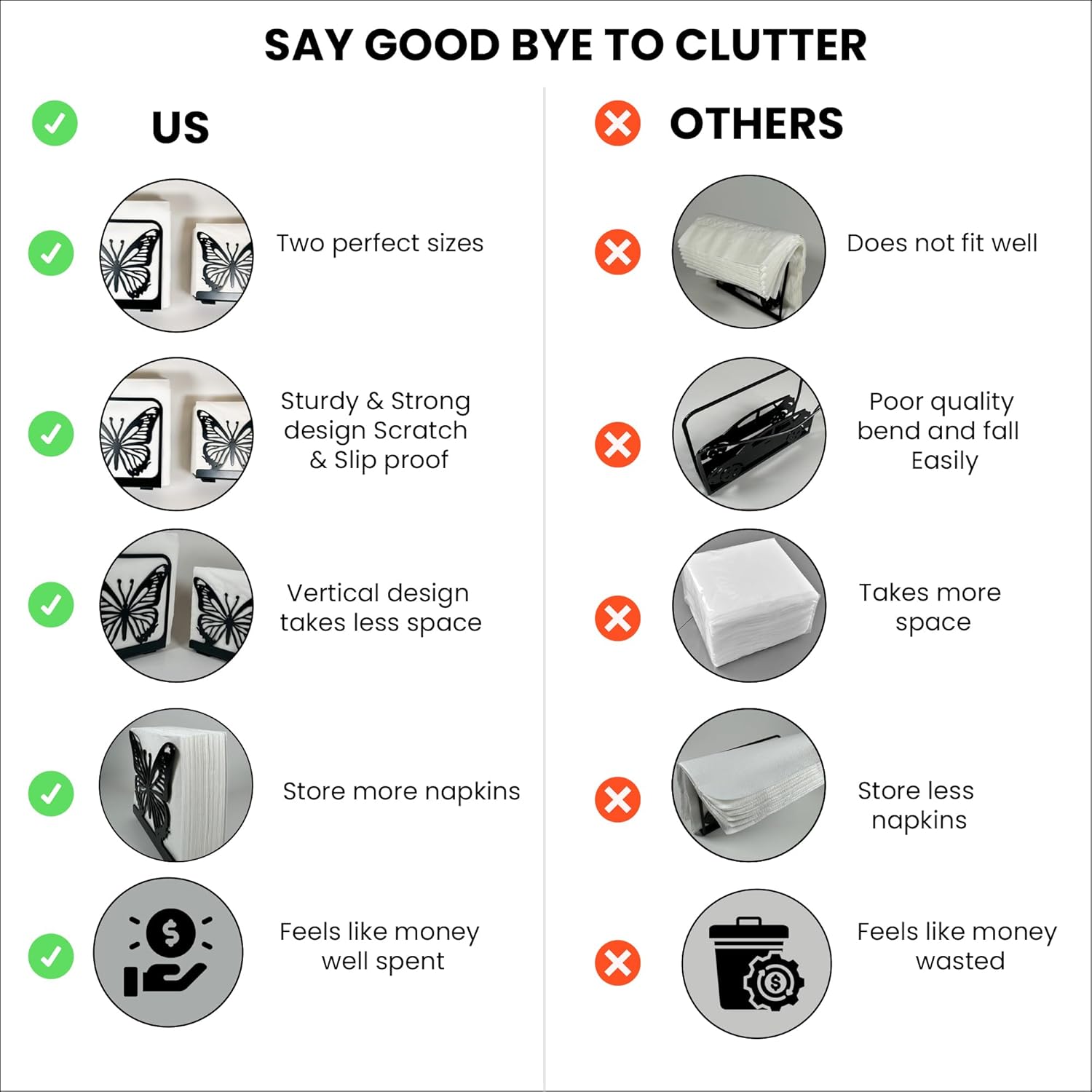 - Store More: Can store more napkins so, don't have to refill often, feels like money well spent.
