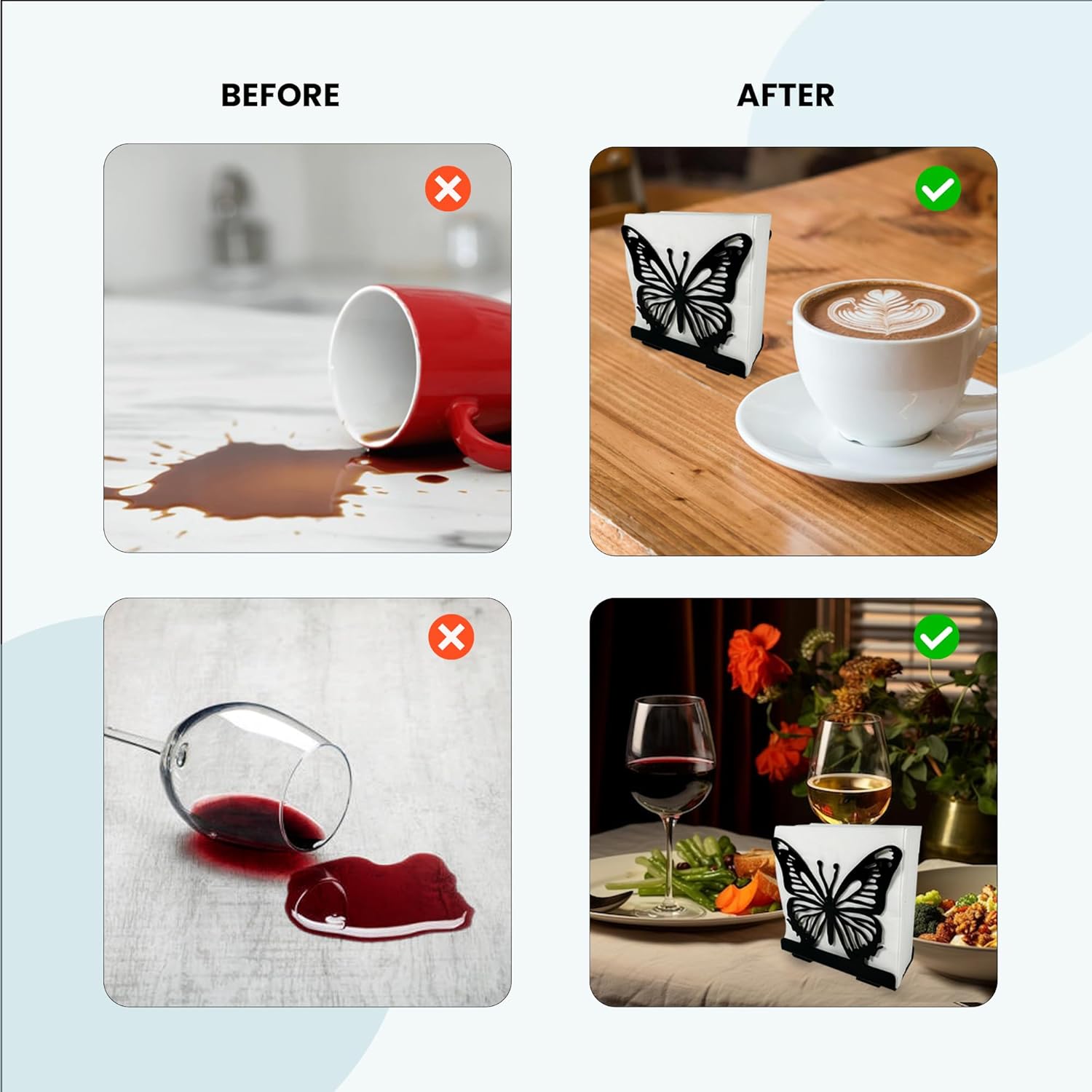 Butterfly Napkin Holder Set – 2 Pack Metal Stand for Everyday & Cocktail Napkins | Modern Black Decorative Coffee Filter Holder for Kitchen, Coffee Bar, Party, Dining Table & Gift