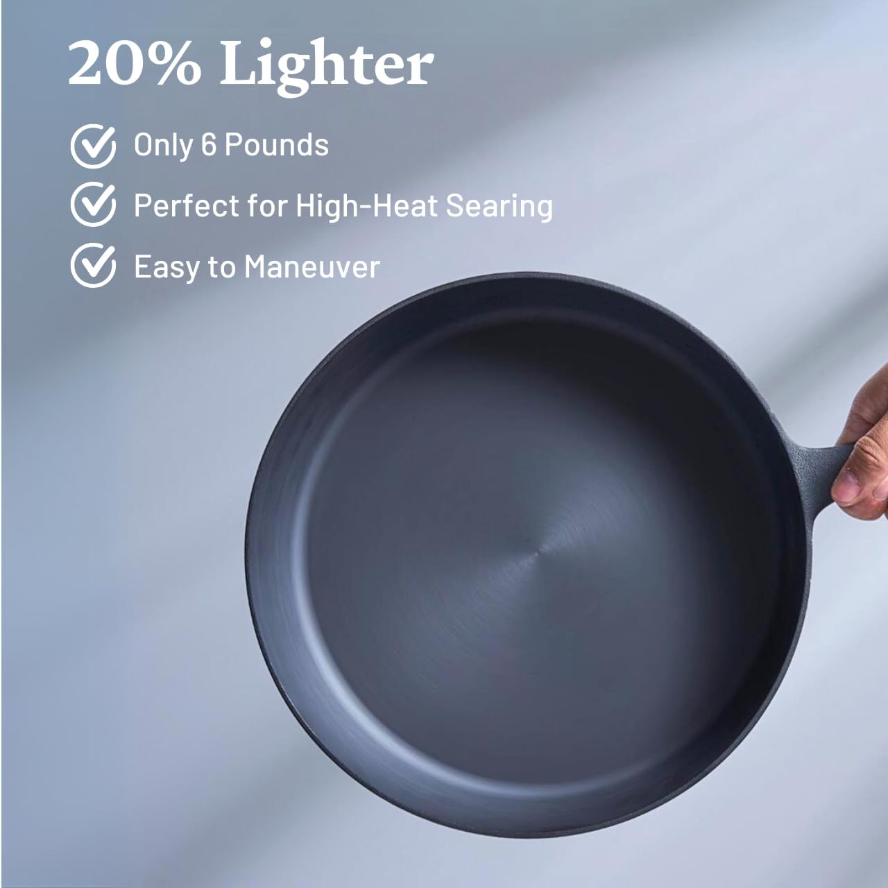 - Lightweight cast iron skillet: This 12 inch cast iron skillet is 20% lighter than traditional ones, weighing just 6 lbs. Perfect as a camping skillet or for everyday use, it's ideal for those who want the benefits of cast iron cookware without the heft.